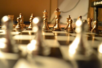 Jogo de xadrez com uma xícara de café