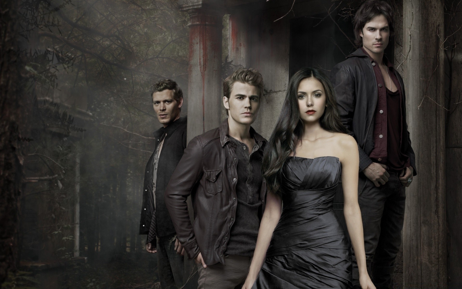 Nina Dobrev é cercada por atores de 'The Vampire Diaries'