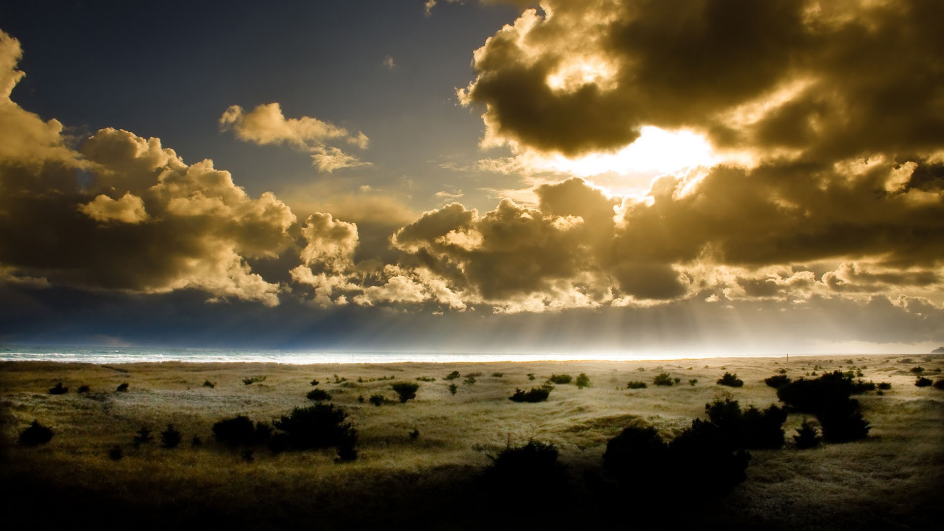 Praia com sol e raios