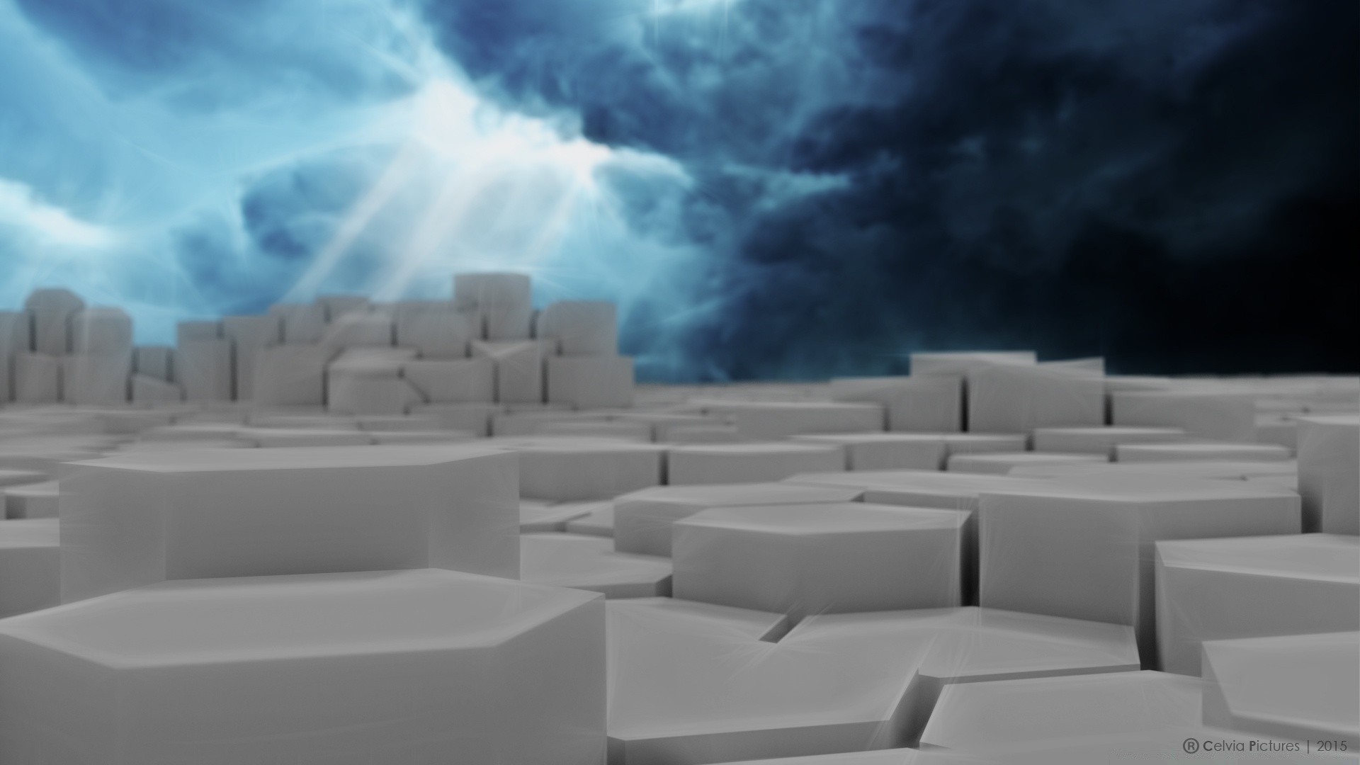 Raios através das nuvens raios do céu. Pedras cinzentas. Design