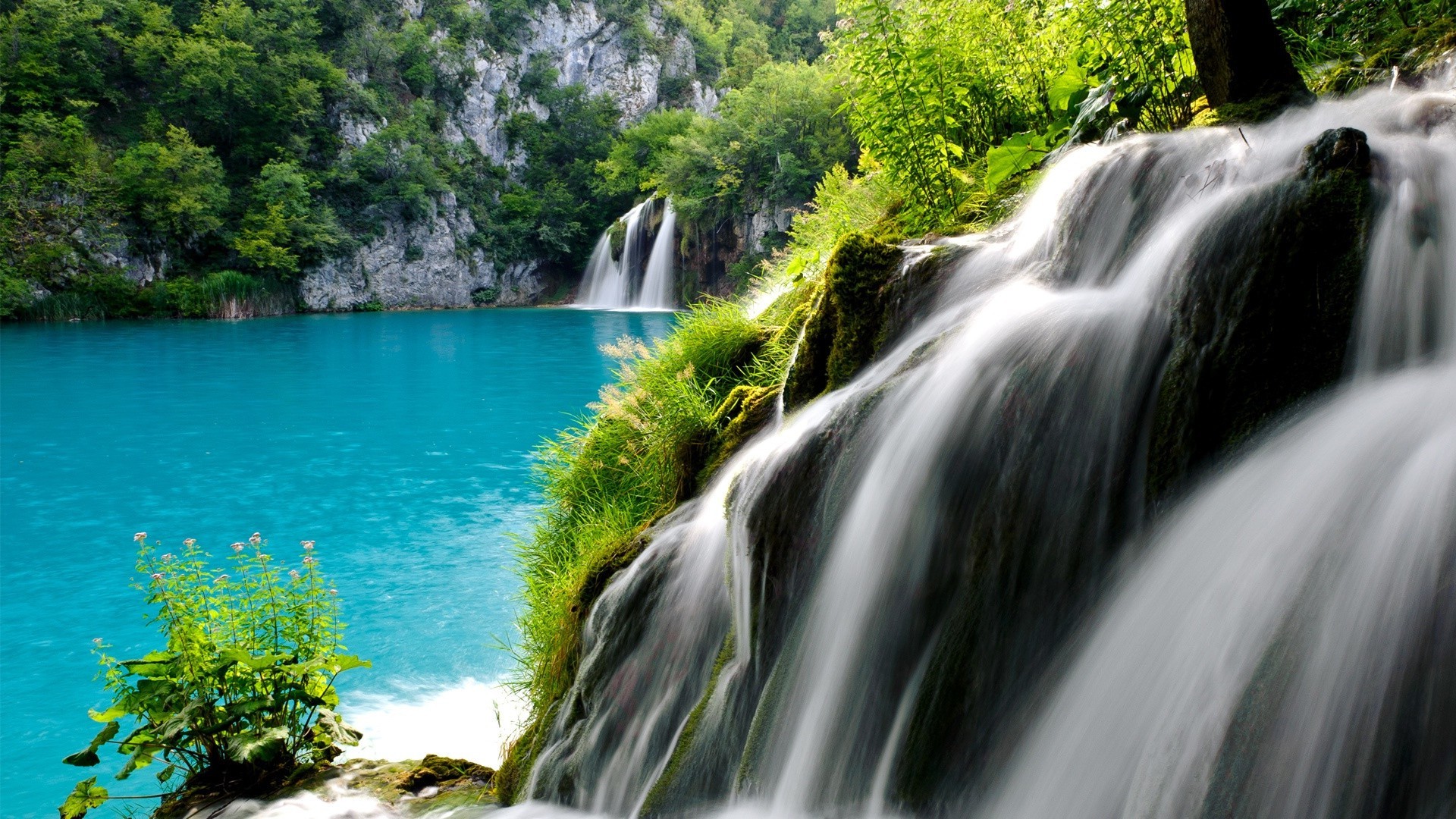 Papel de parede fantástico com lagoa. Cervos na natureza