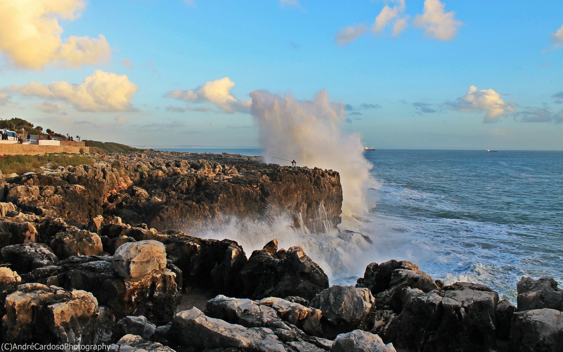 O mar, as ondas, as pedras. Céu azul