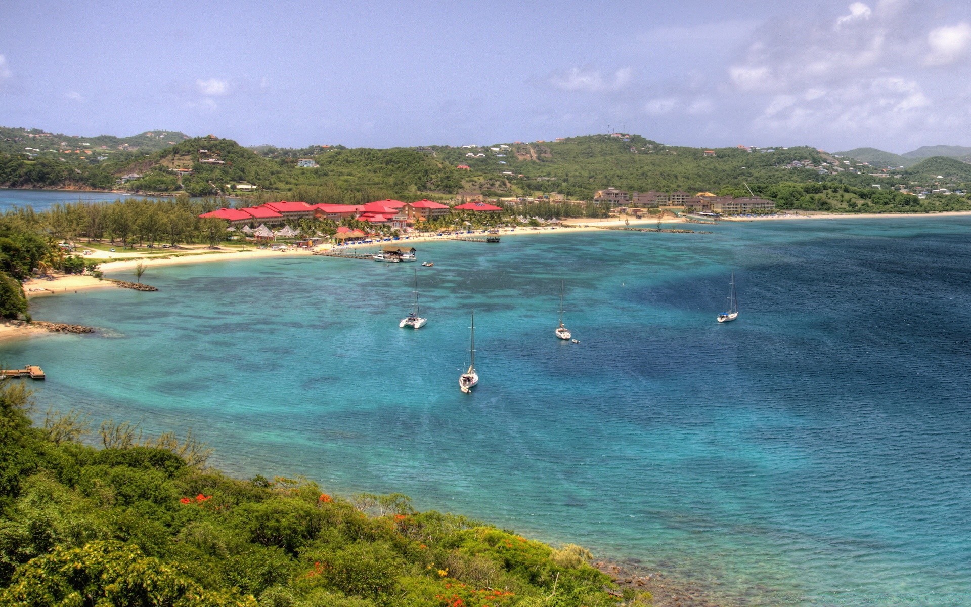 Oceano esmeralda e praia branca