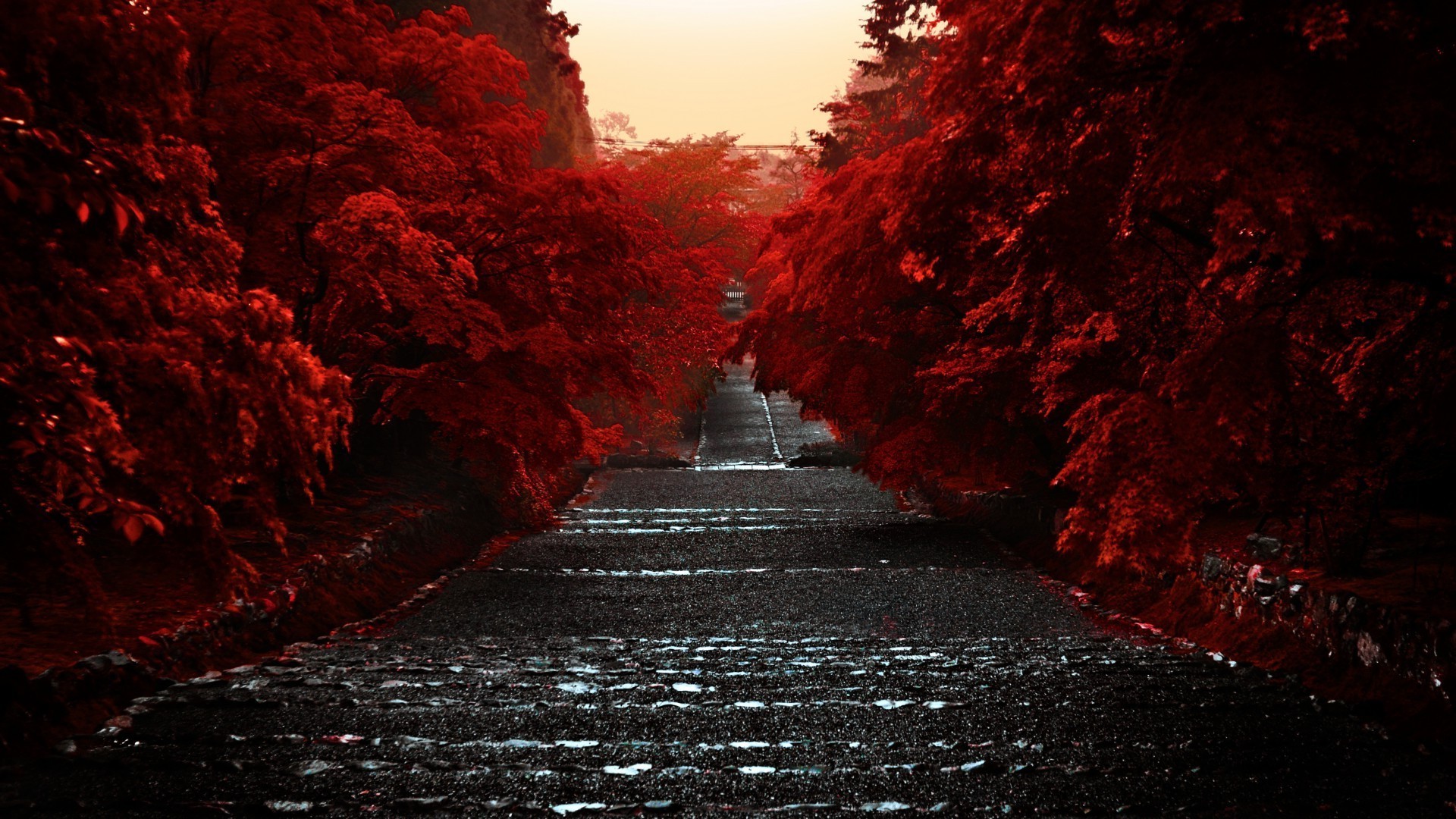 O caminho do outono para baixo. Linda luz