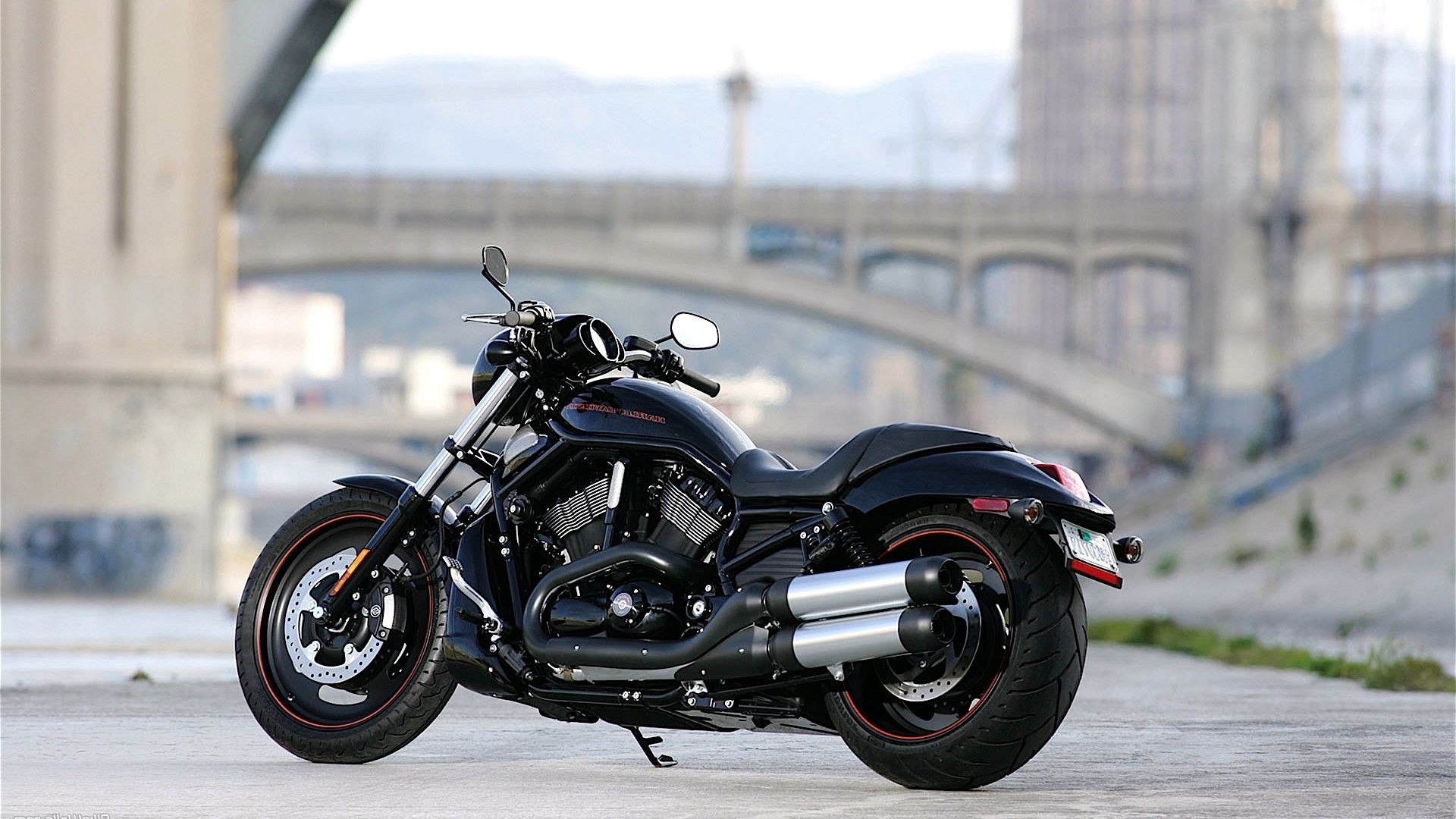 Motocicleta em meio a uma ponte borrada