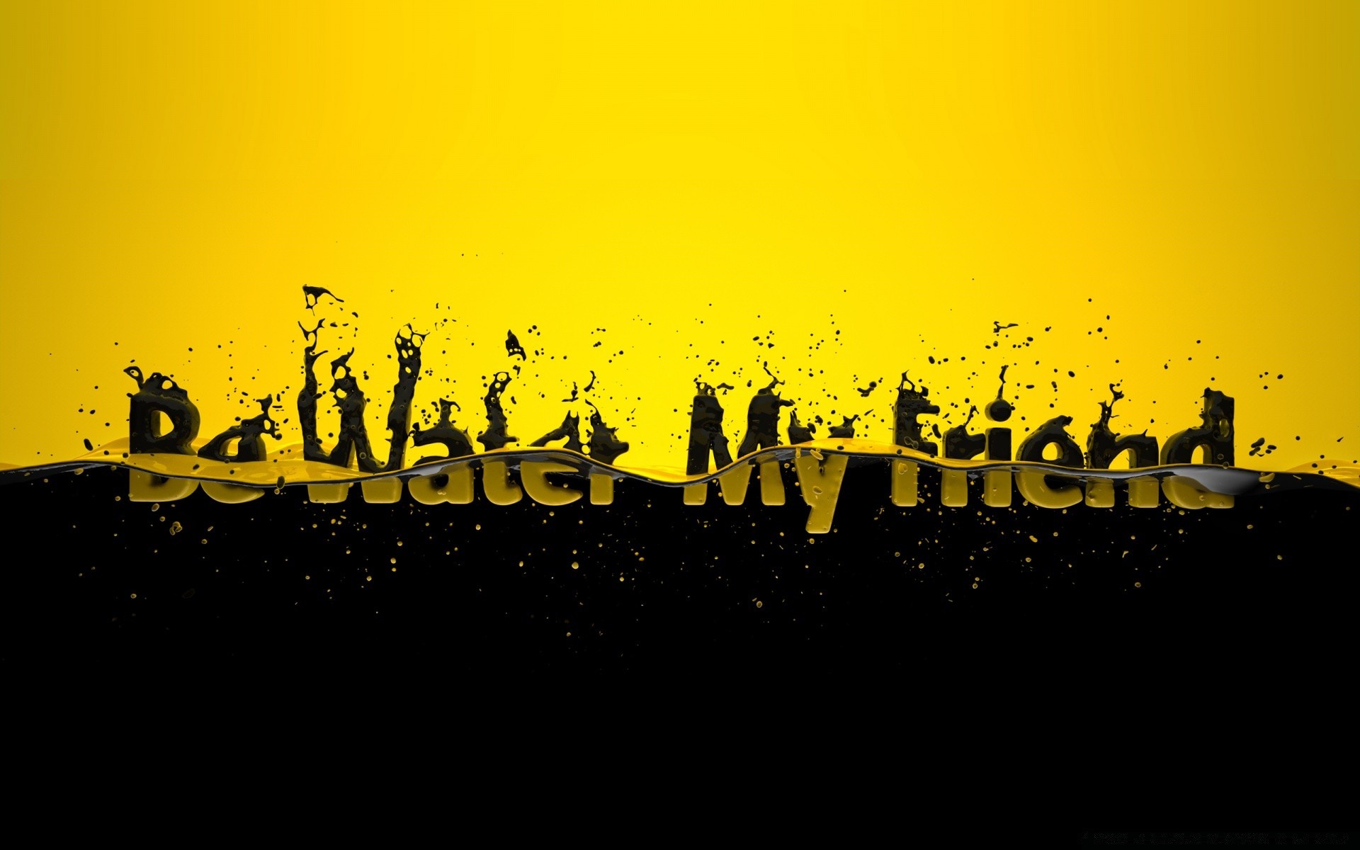 O texto é colocado meio na água sobre um fundo preto e amarelo