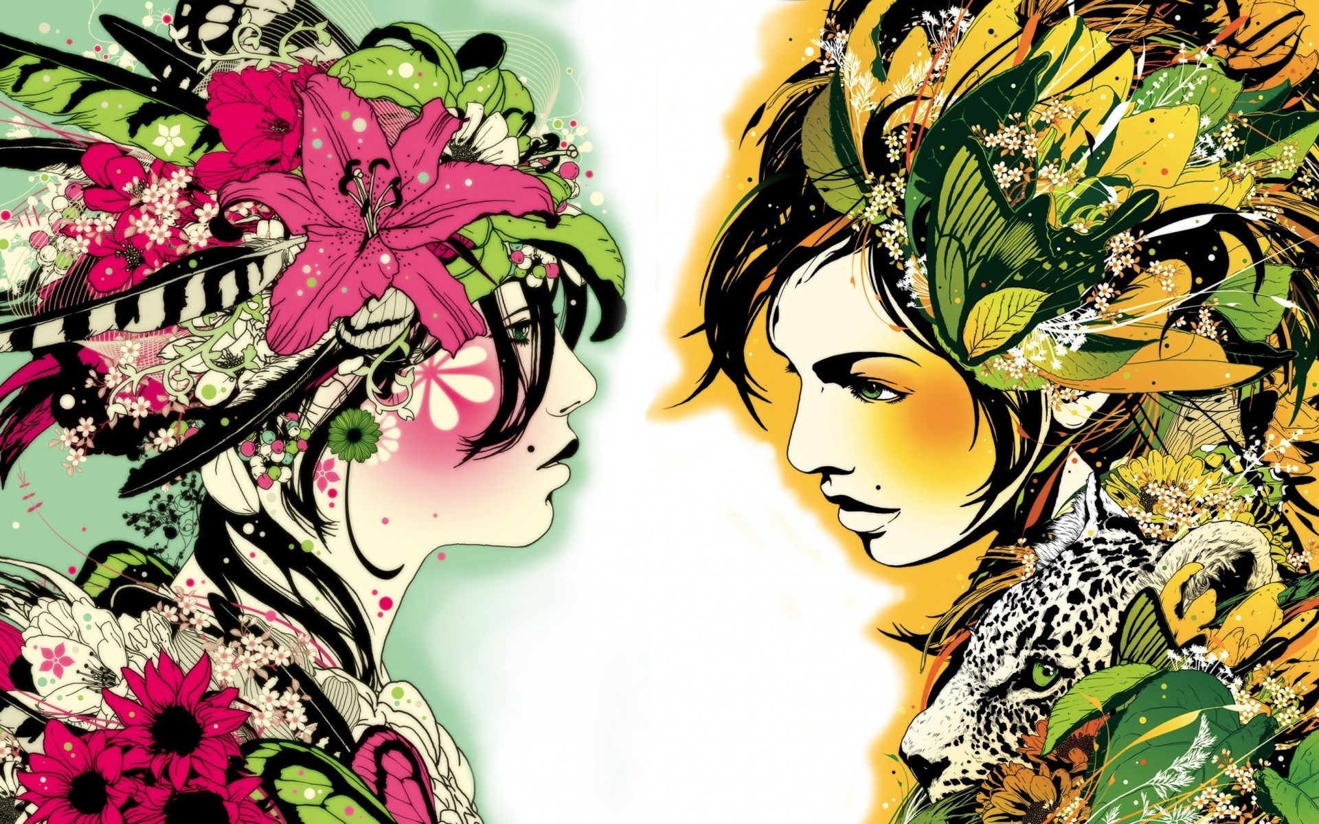 Meninas jovens em vestidos bonitos e homens em ternos escuros