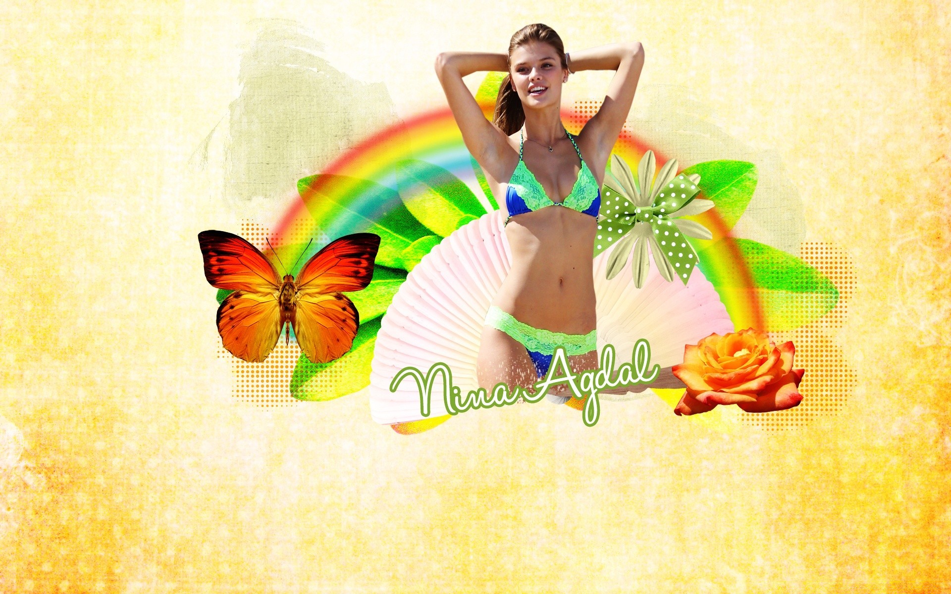 Menina de biquíni no fundo de um lindo arco-íris