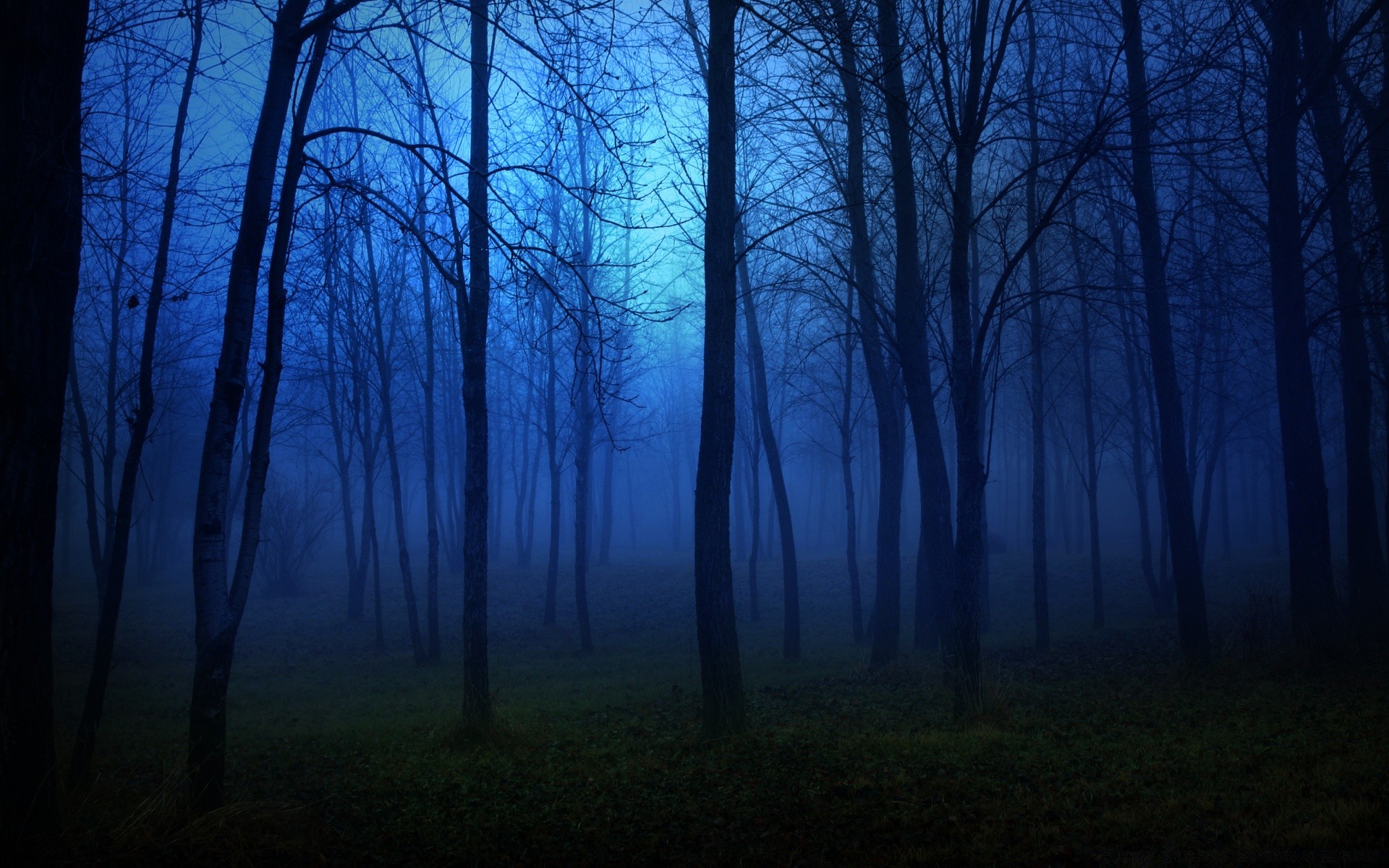 Paisagem da floresta noturna antes do amanhecer