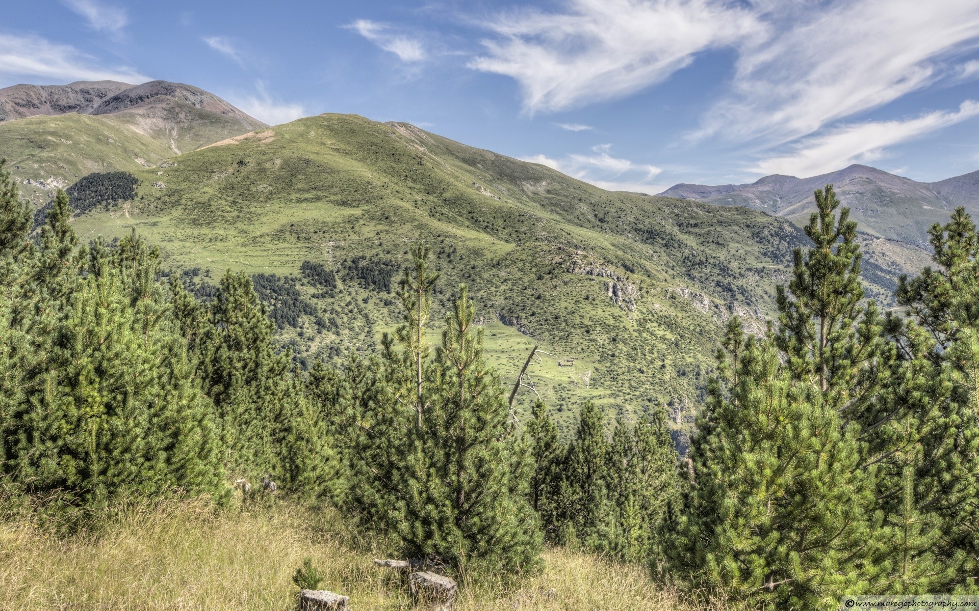 Fotografia. rio de montanha no fundo de montanhas altasFotografia. Rio de montanha no fundo de montanhas altas