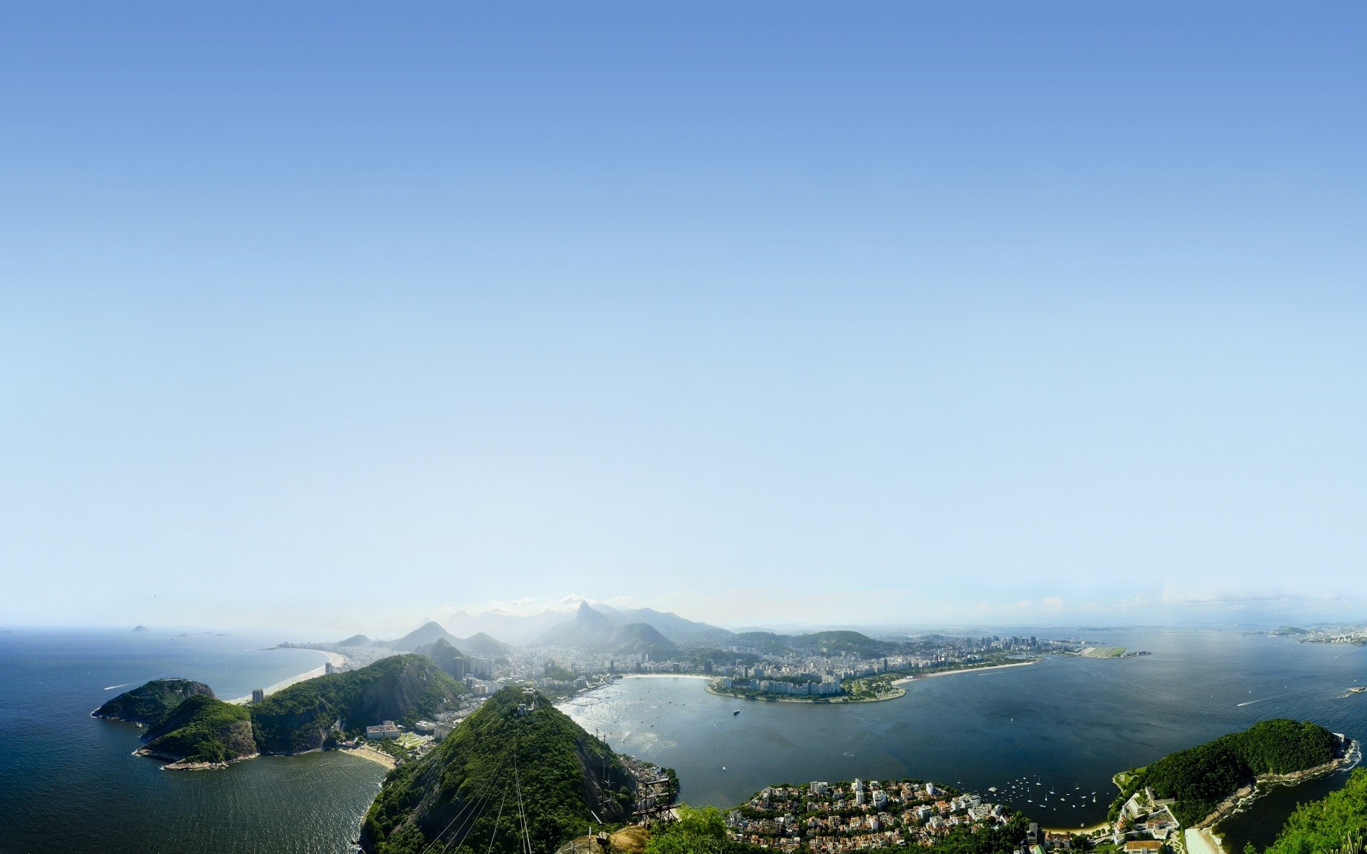 O sol apareceu acima da montanha, diante da qual a superfície da água se espalhou
