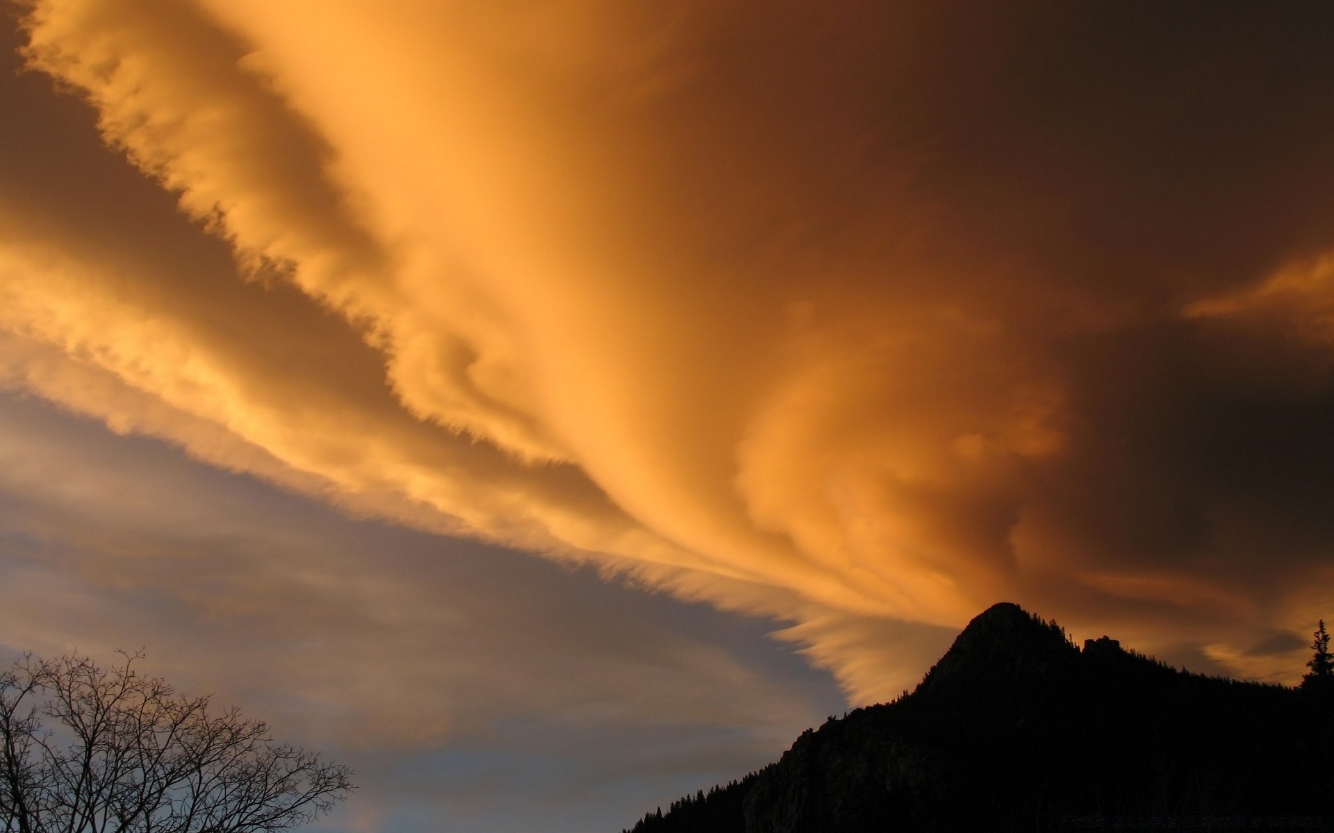Montanha solitária no fundo do céu brilhante do pôr do sol