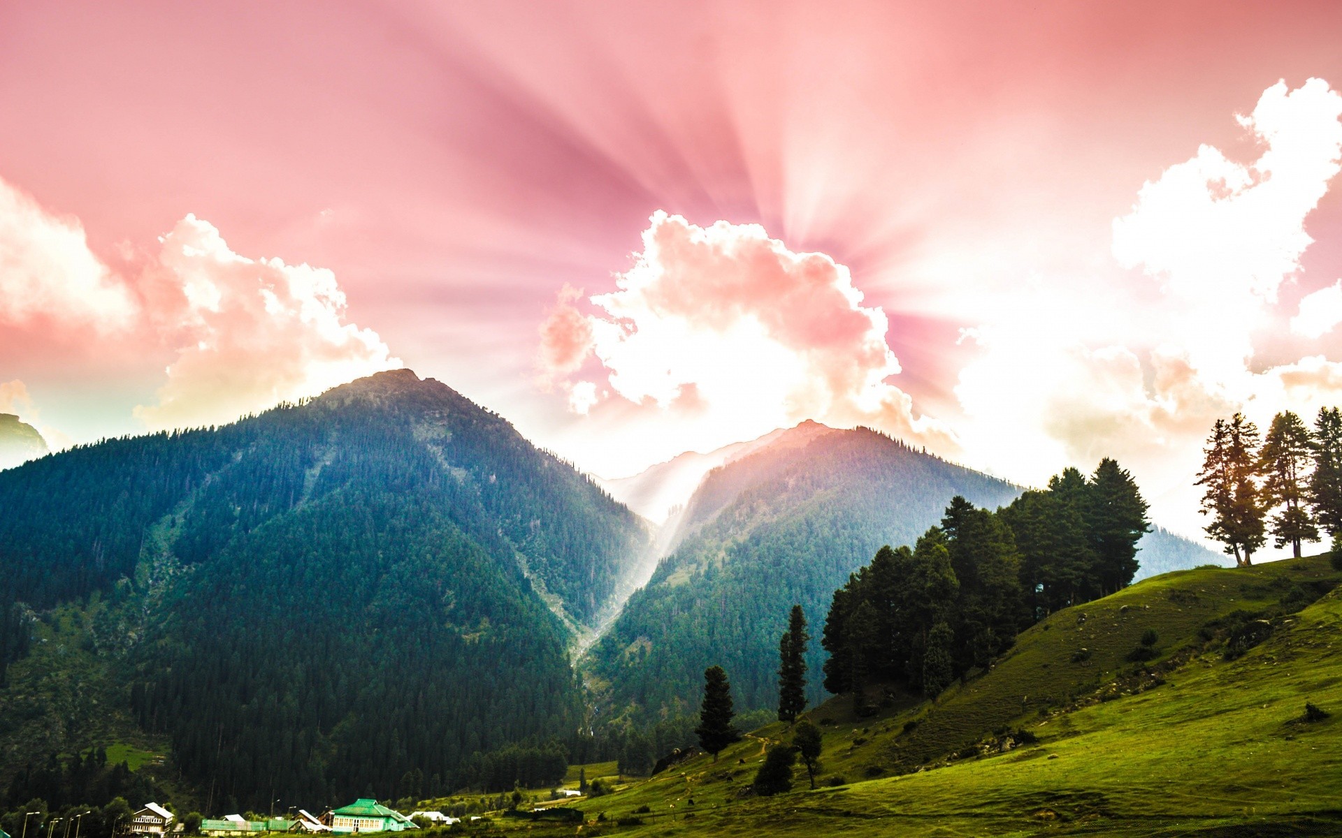 Uma névoa leve tocou as montanhas
