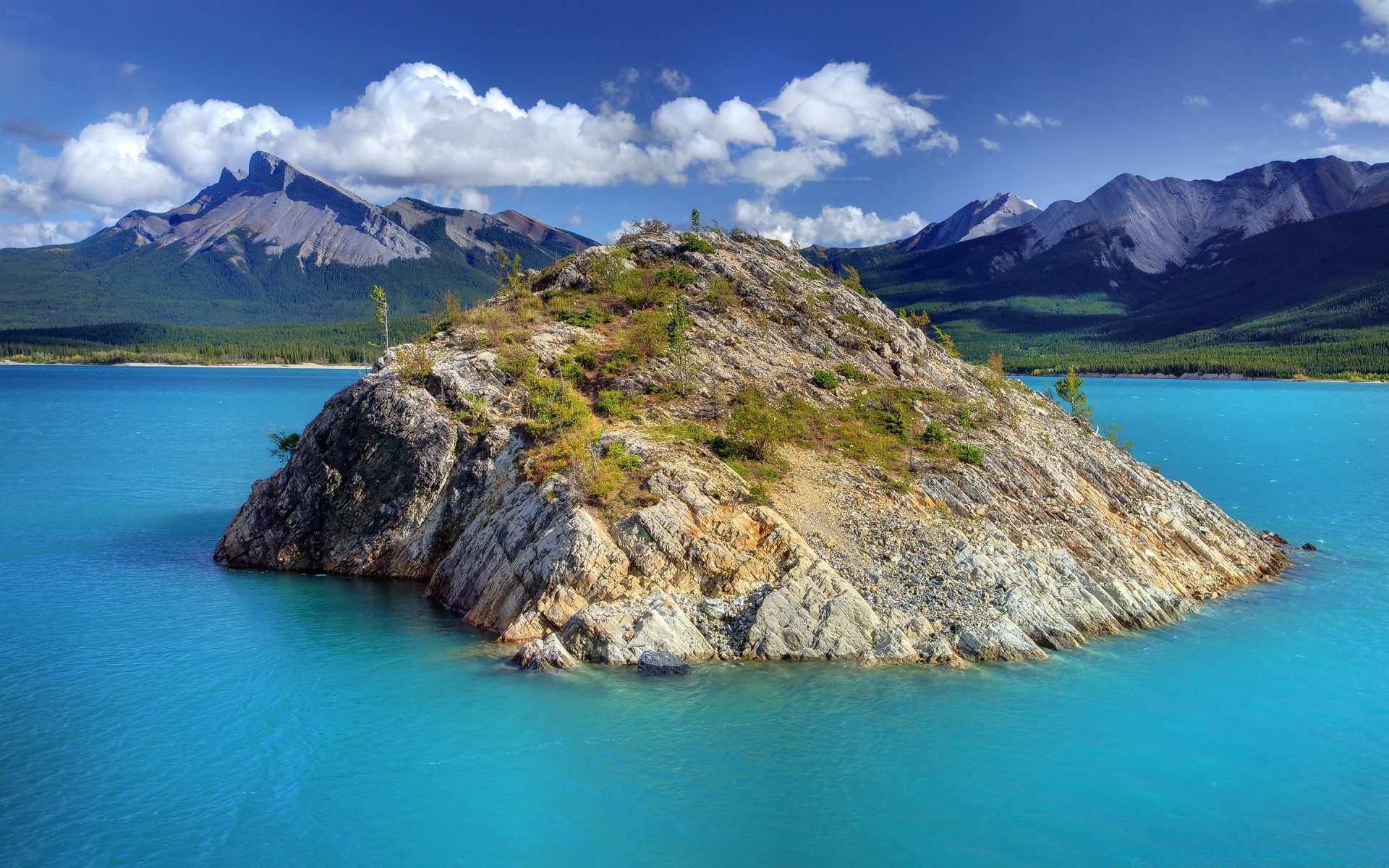 Montanhas na água. América para viagens