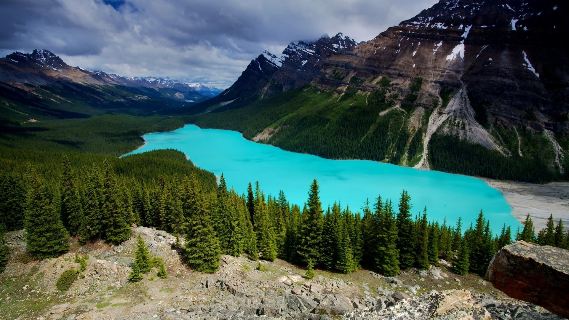 Belas montanhas e céu com nuvens são refletidas no lagoBelas montanhas e céu com nuvens são refletidas no lago