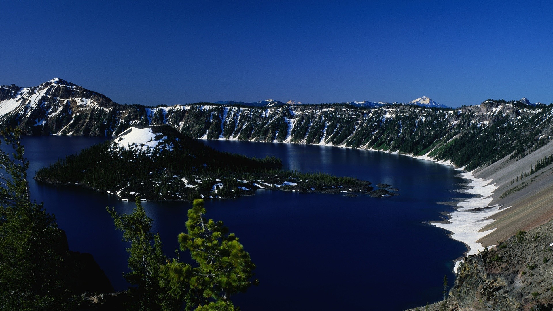 Magníficas montanhas cobertas de neve e seu reflexo na águaMagníficas montanhas cobertas de neve e seu reflexo na água