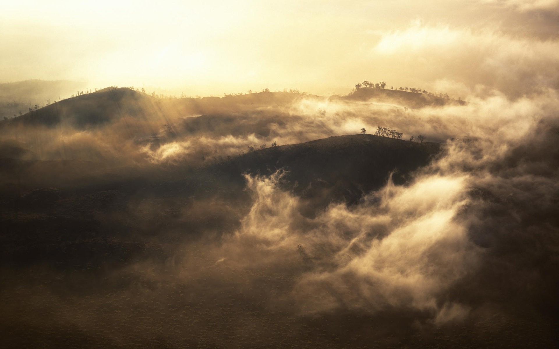 Árvores adormecidas no fundo do pôr do sol cinzento do outono