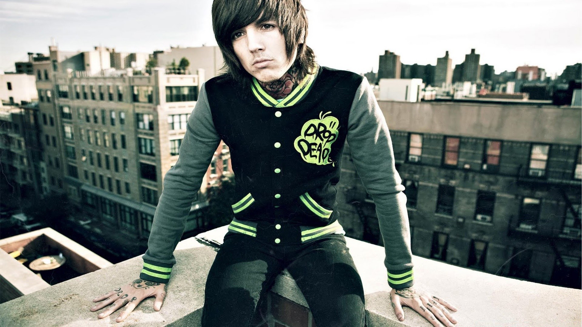 Cabelo comprido cara Morena sozinho no telhado