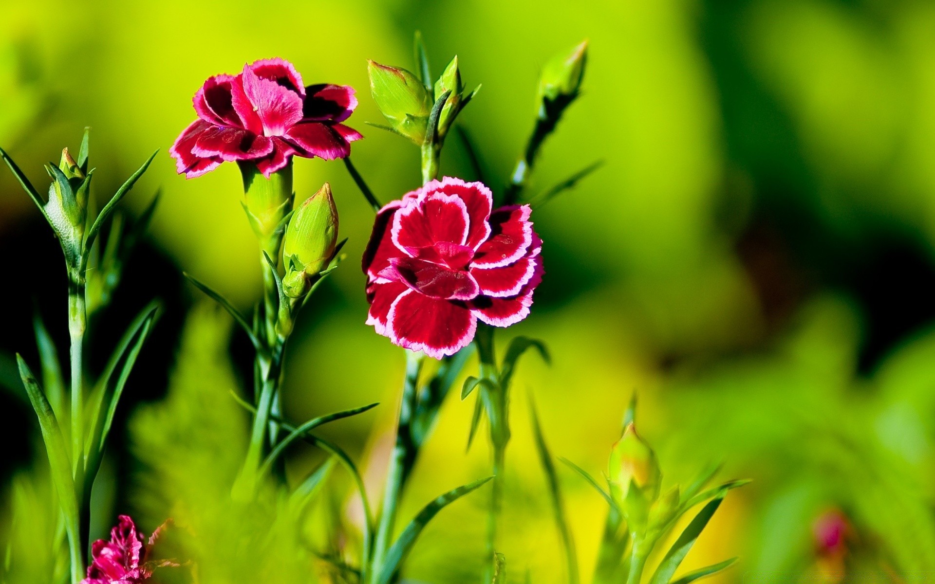 Dois cravos vermelhos em um fundo verde
