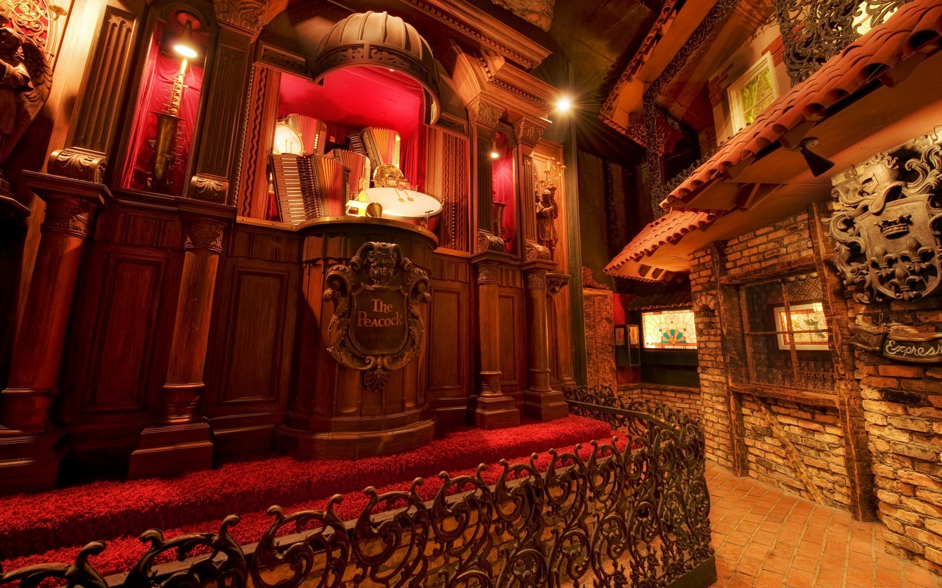 Lâmpada em um interior vintage de tons vermelhos