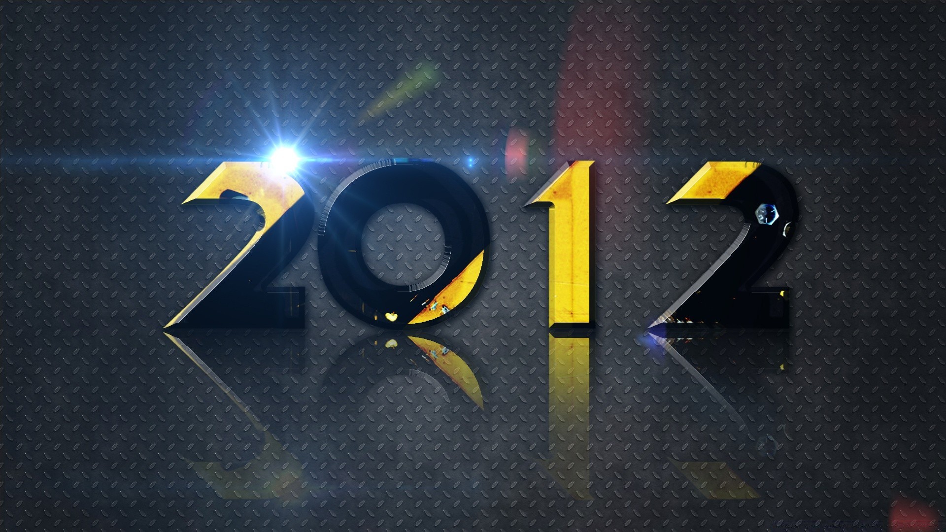 Os números de 2012 são preto e amarelo em um fundo preto com um acento luminoso no primeiro dígito