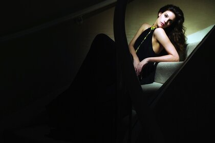 Mulher nas escadas. mulher da moda. uma rapariga bonita. cabelo compridoMulher nas escadas. Mulher da moda. Uma rapariga bonita. Cabelo comprido