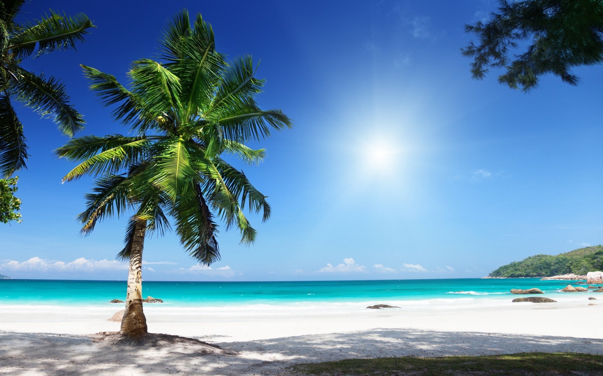 Palmeira verde em uma ilha tropical