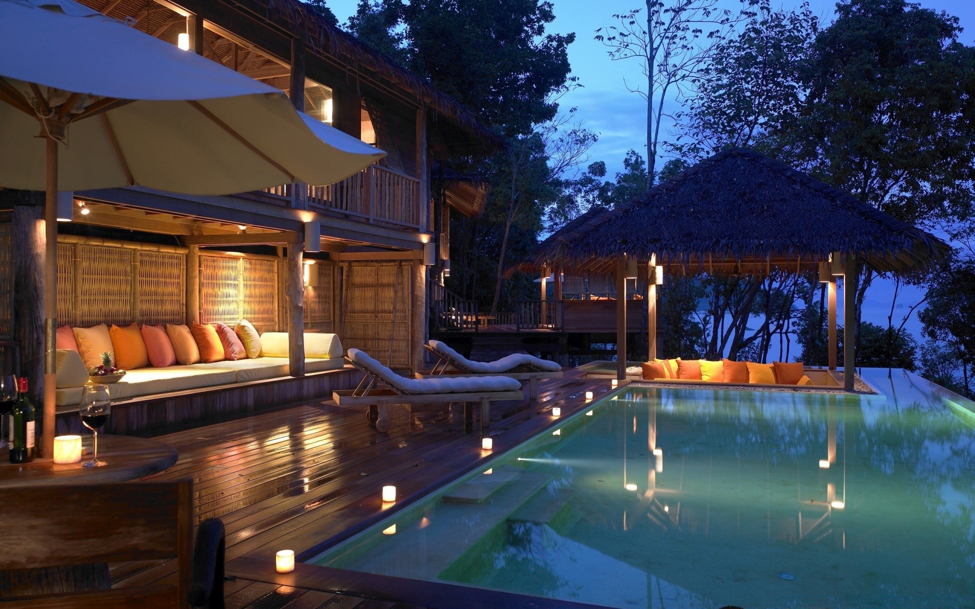 Casas de luxo e piscina no resort