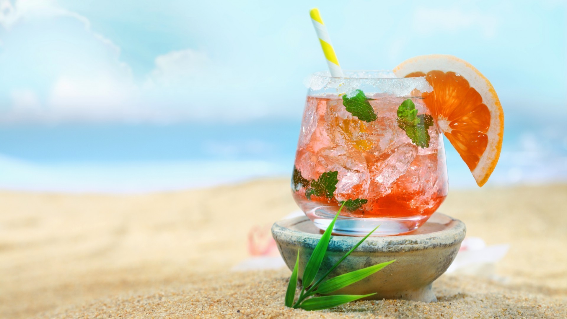Bebida tropical na praia à beira-mar