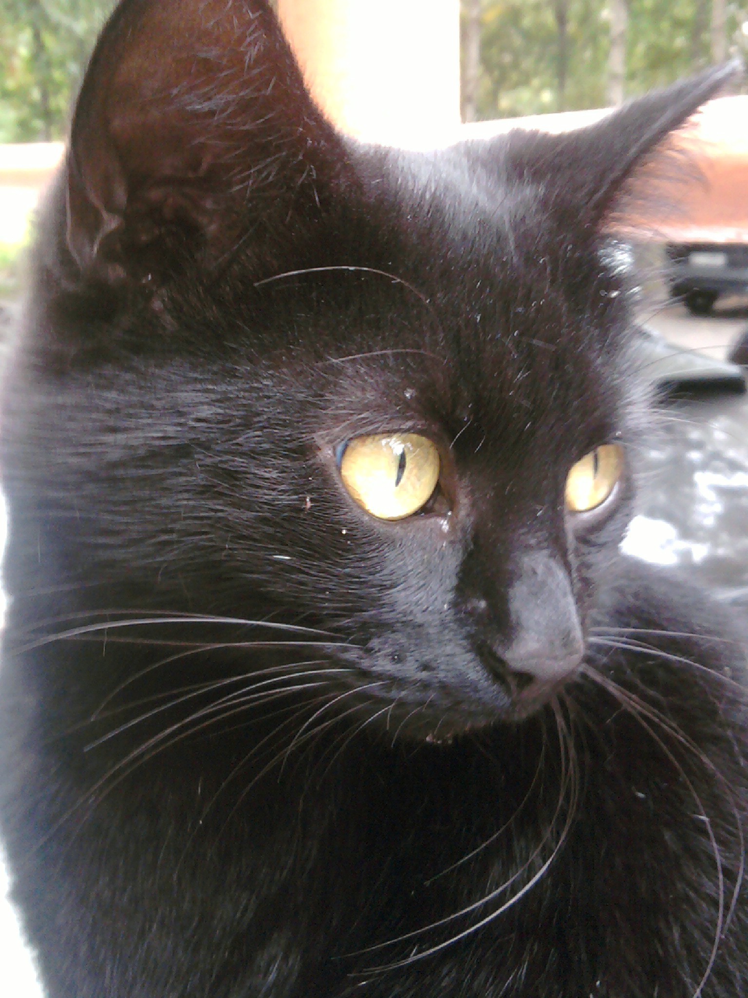 Gato preto bonito com olhos amarelos