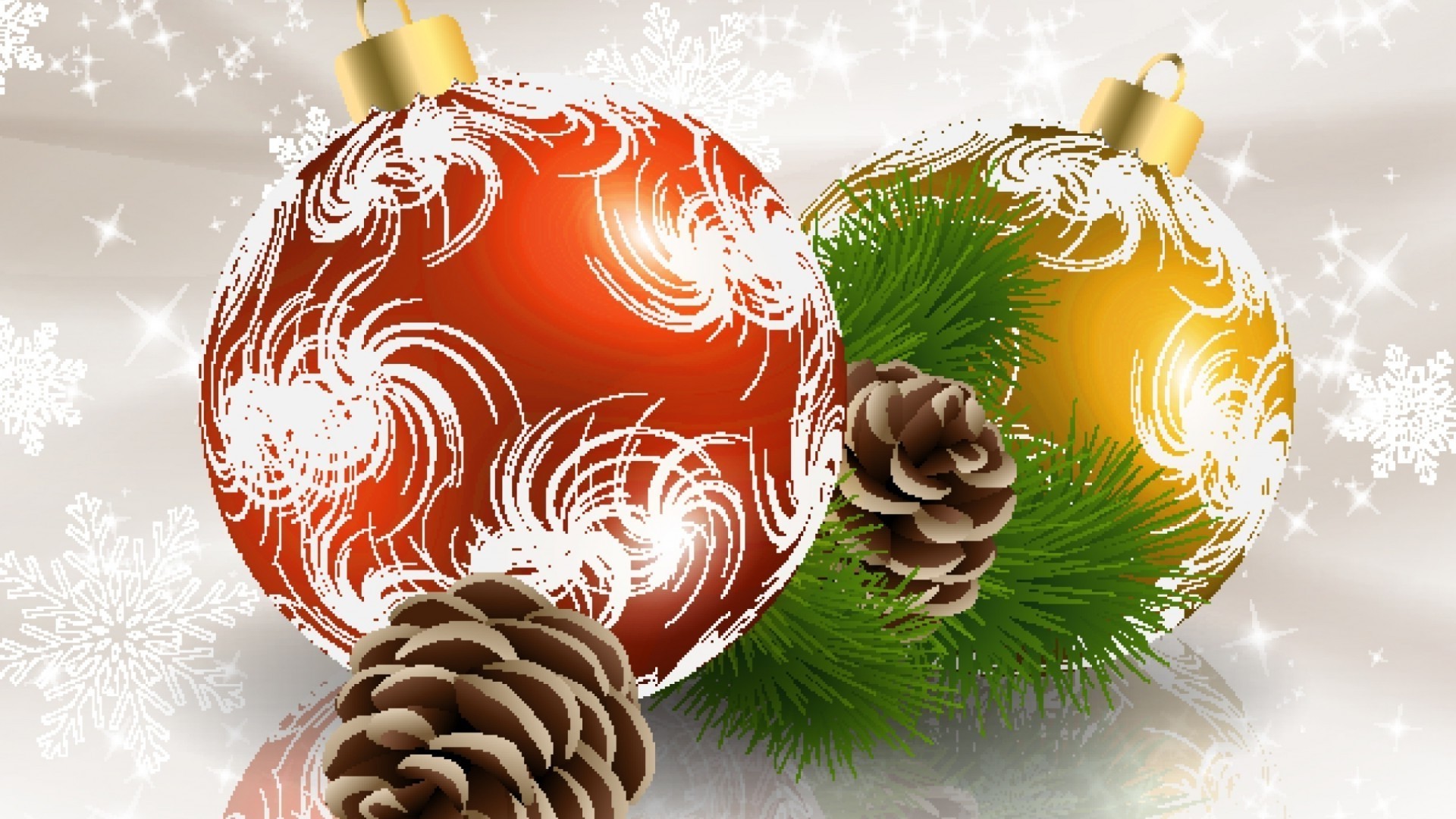 Bolas de Natal com cones e agulhas de pinho estamos em um fundo cinza
