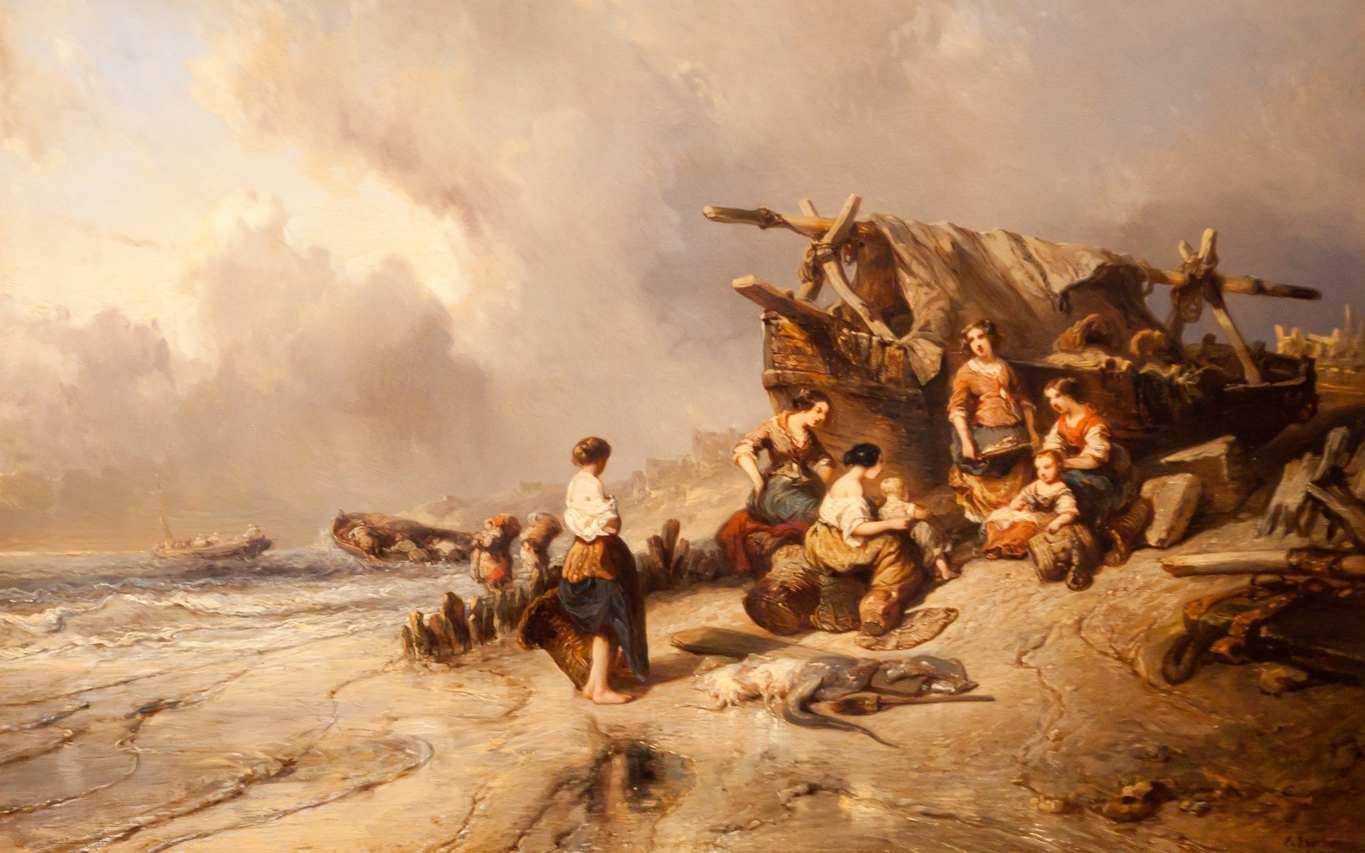 Pintura do artista sobre mulheres e navios