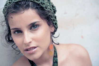 Cantora Nellie Furtado em fundo branco