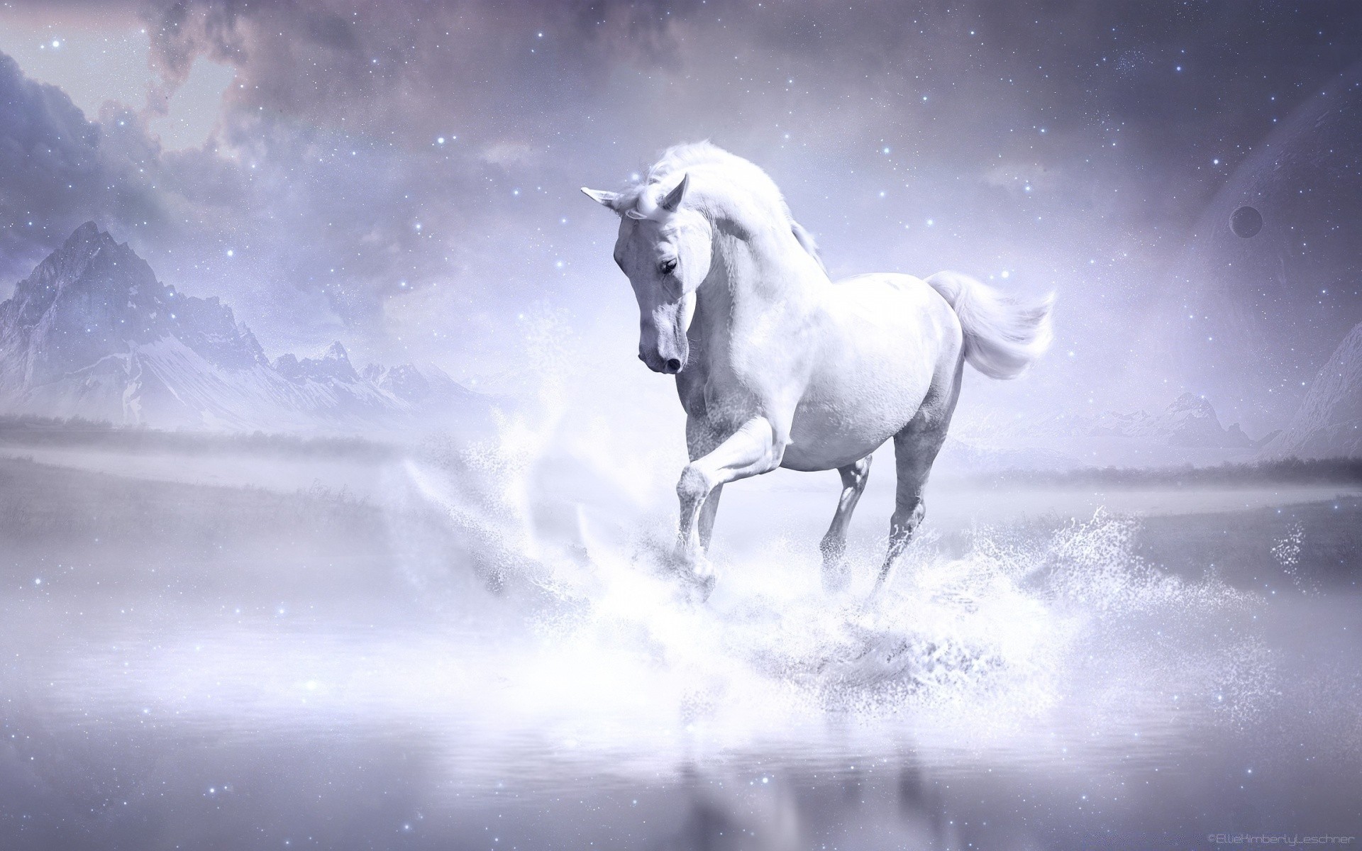 Cavalo branco gracioso corre na neve