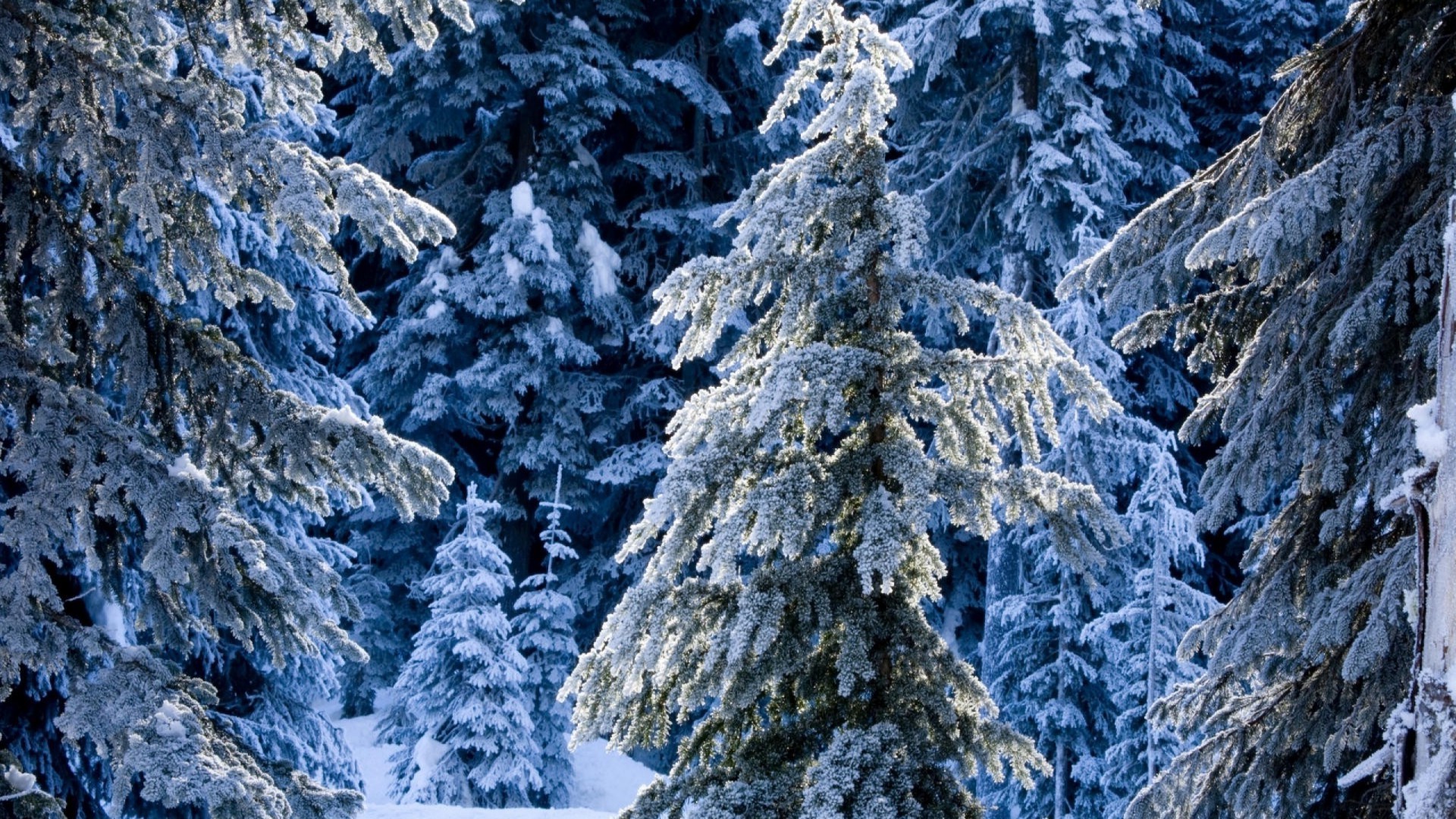Bela floresta de coníferas cobertas de neve