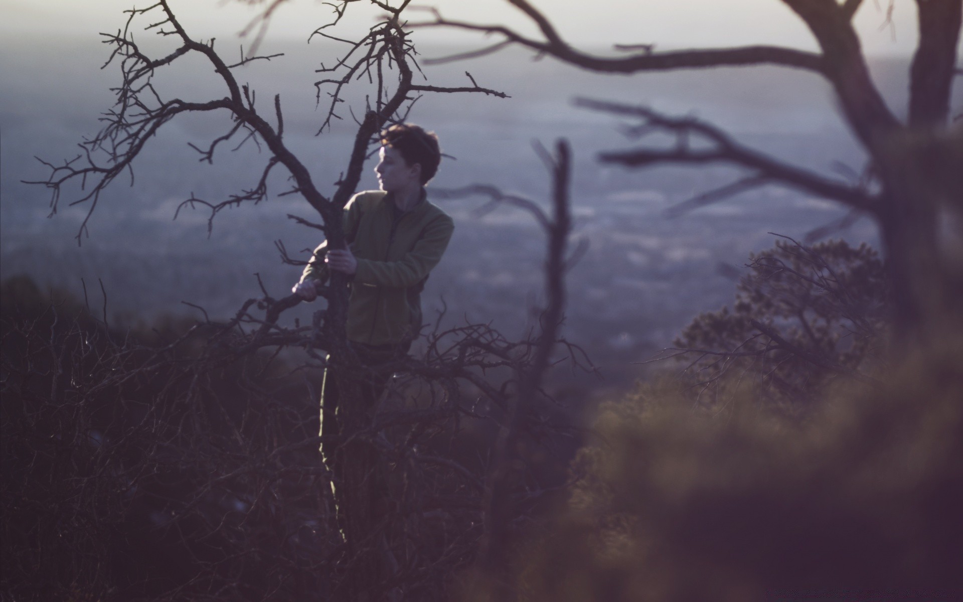 Floresta coberta de neve no fundo de uma colina no nevoeiro