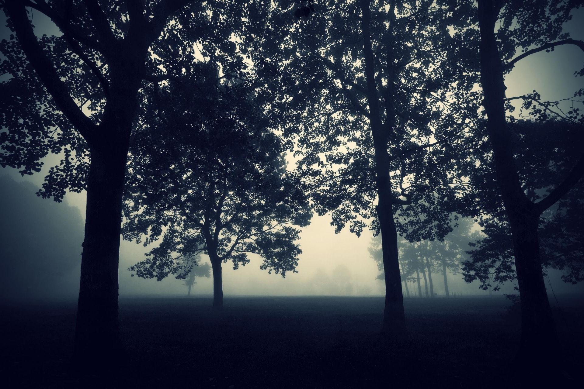 Fotos de montanhas no nevoeiro no fundo do pôr do sol