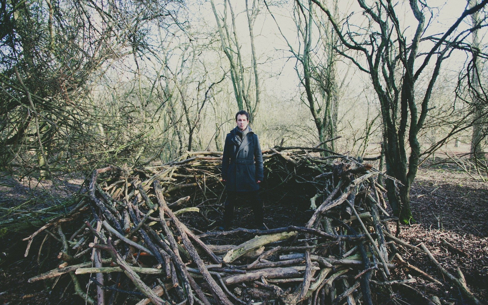 Árvore solitária com um ninho no fundo da natureza de Inverno