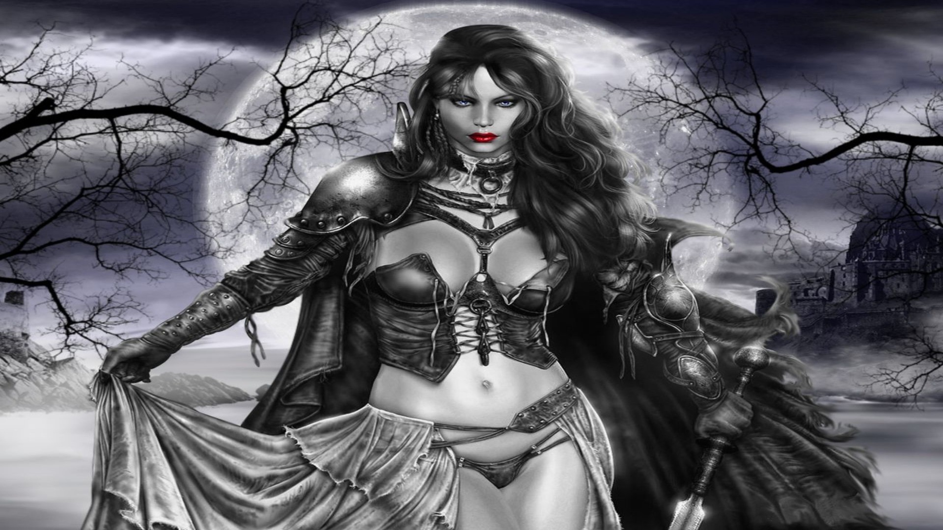 Mulher guerreira no pôr da lua