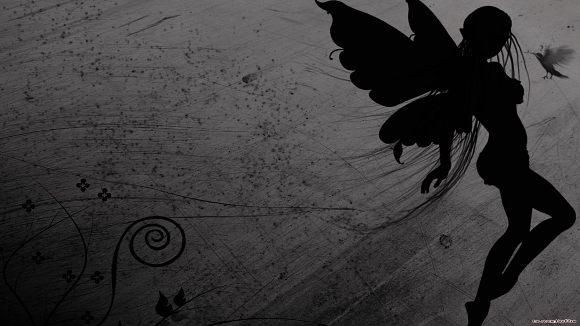 Silhueta de fadas e beija-flores na área de trabalhoSilhueta de fadas e beija-flores na área de trabalho