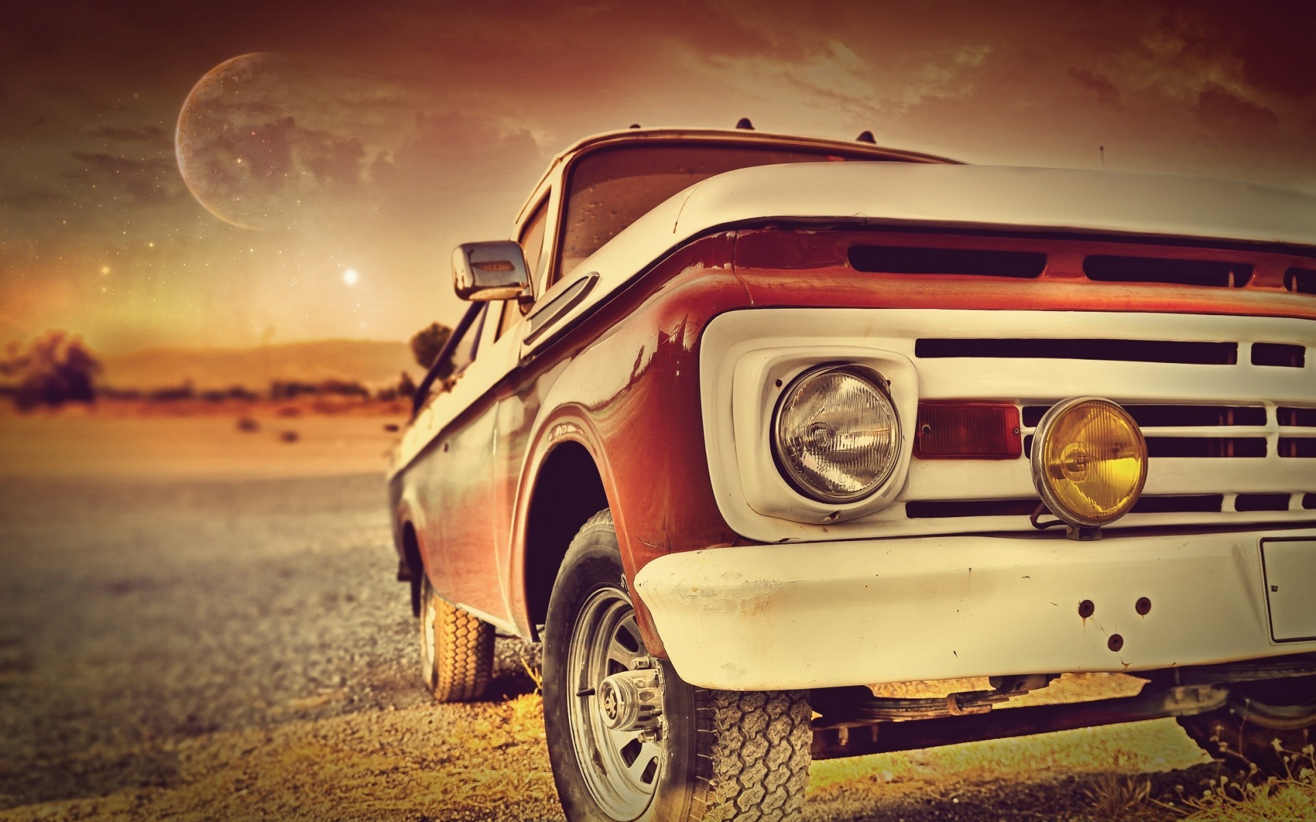 Carro retrô vermelho na foto em estilo envelhecido