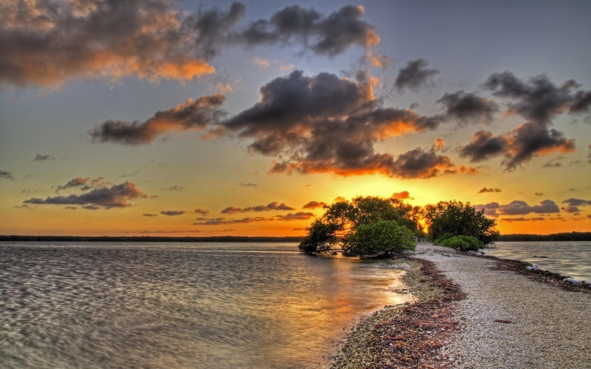 Uma fina trança de areia que leva ao pôr do sol
