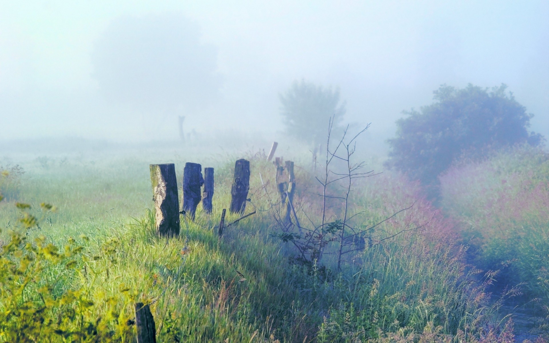 Paisagem de terreno montanhoso com céu sombrio e arco-íris