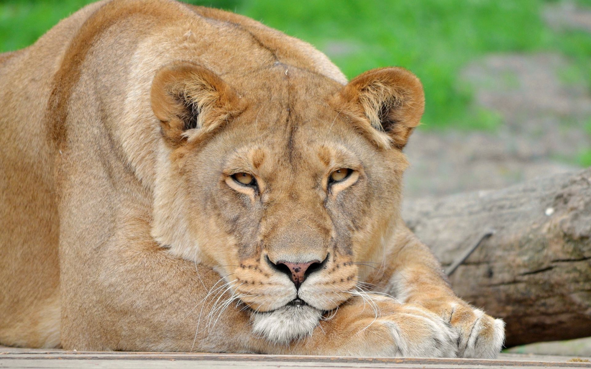 Uma Leoa Selvagem colocou a cabeça em suas patas