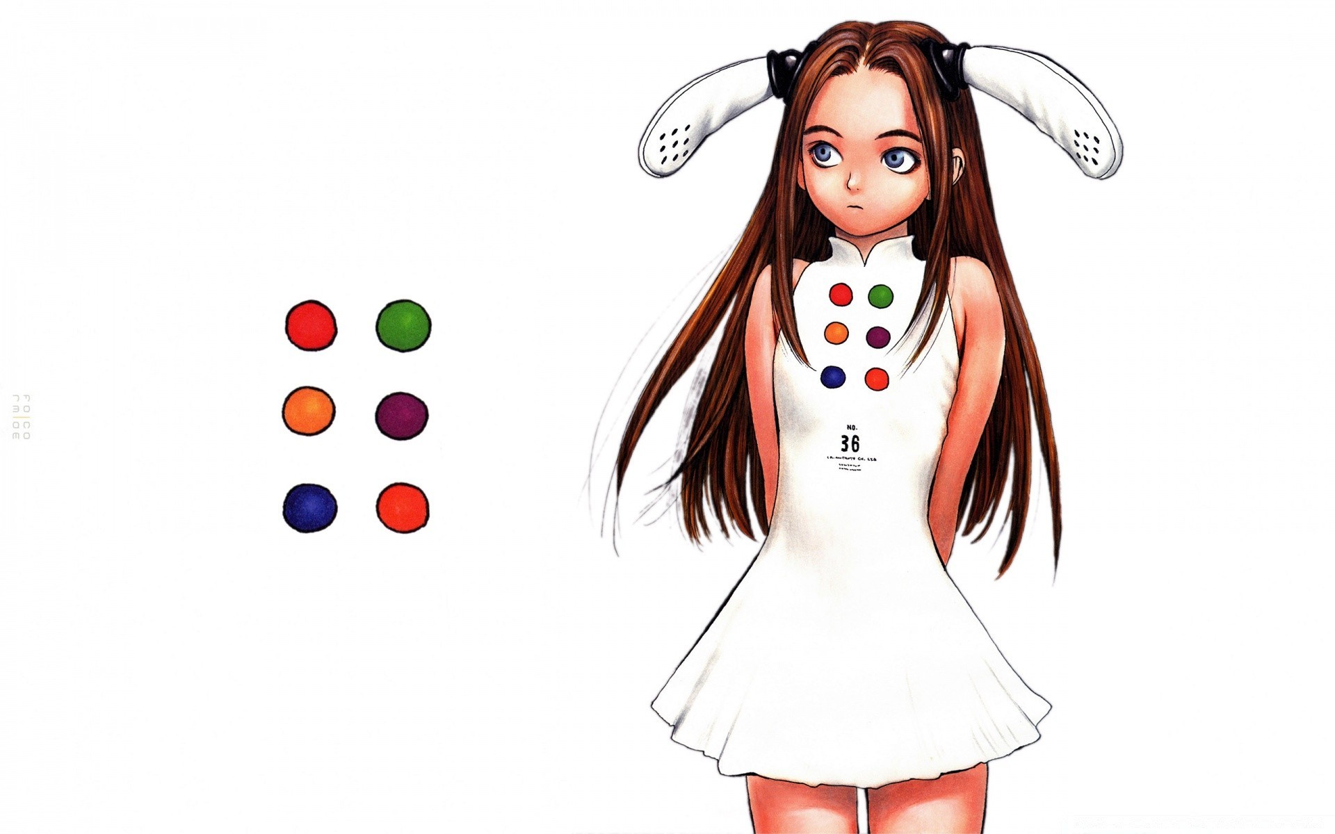 Anime. Menina em vestido branco com orelhas longas brancas
