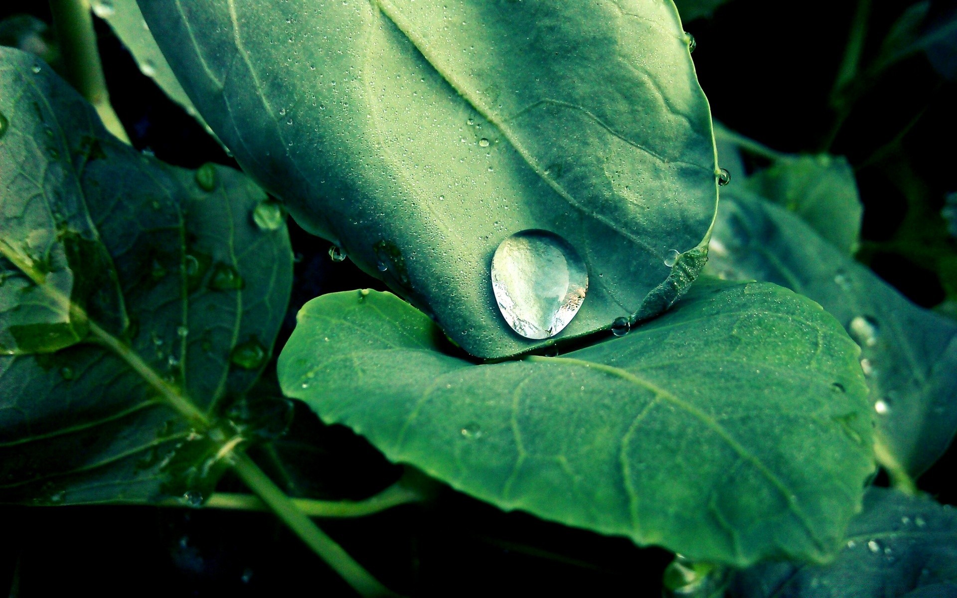 Folhas verdes no orvalho