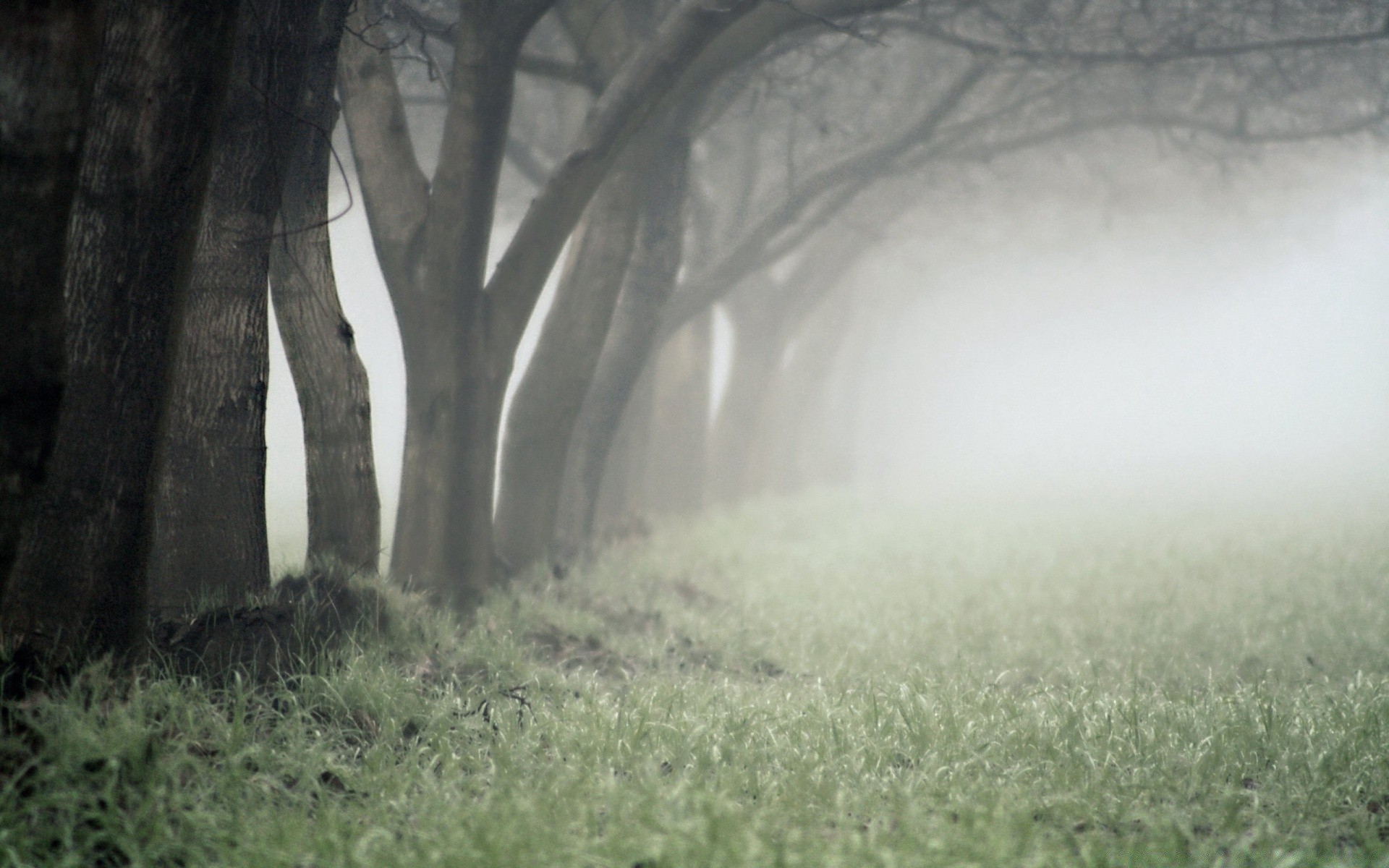 Paisagem enevoada no outono contra árvores