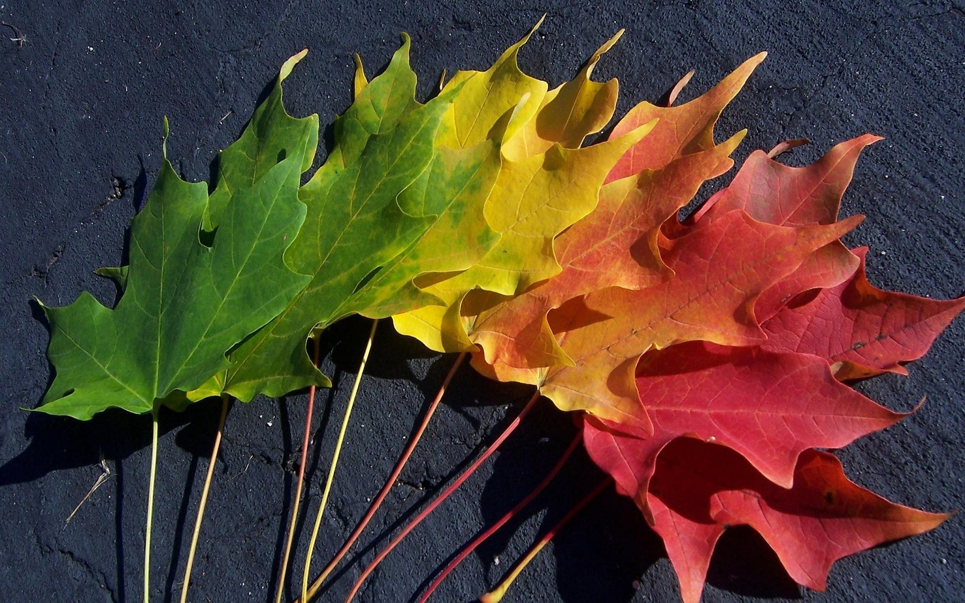 Floresta de outono com folhas vermelhas nas árvores e no chãoFloresta de outono com folhas vermelhas nas árvores e no chão
