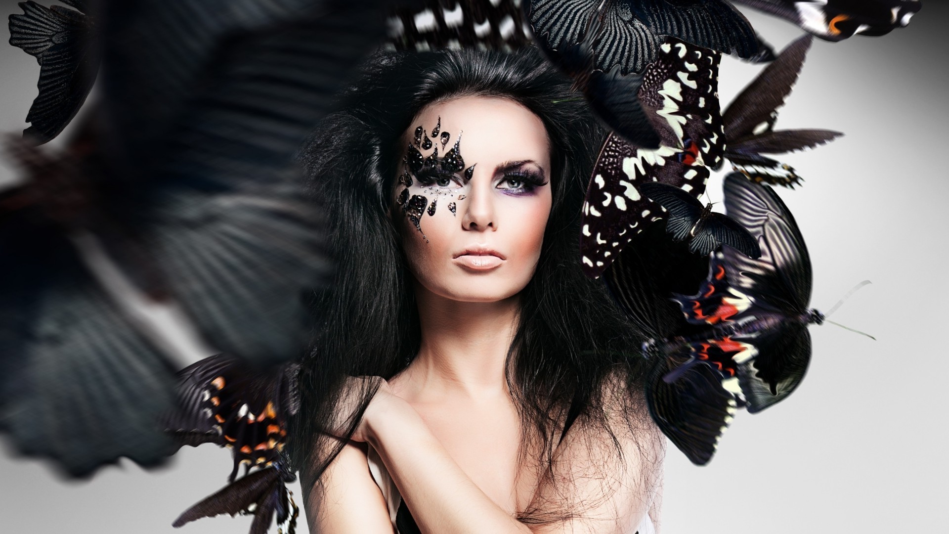 Linda morena chupa com borboleta