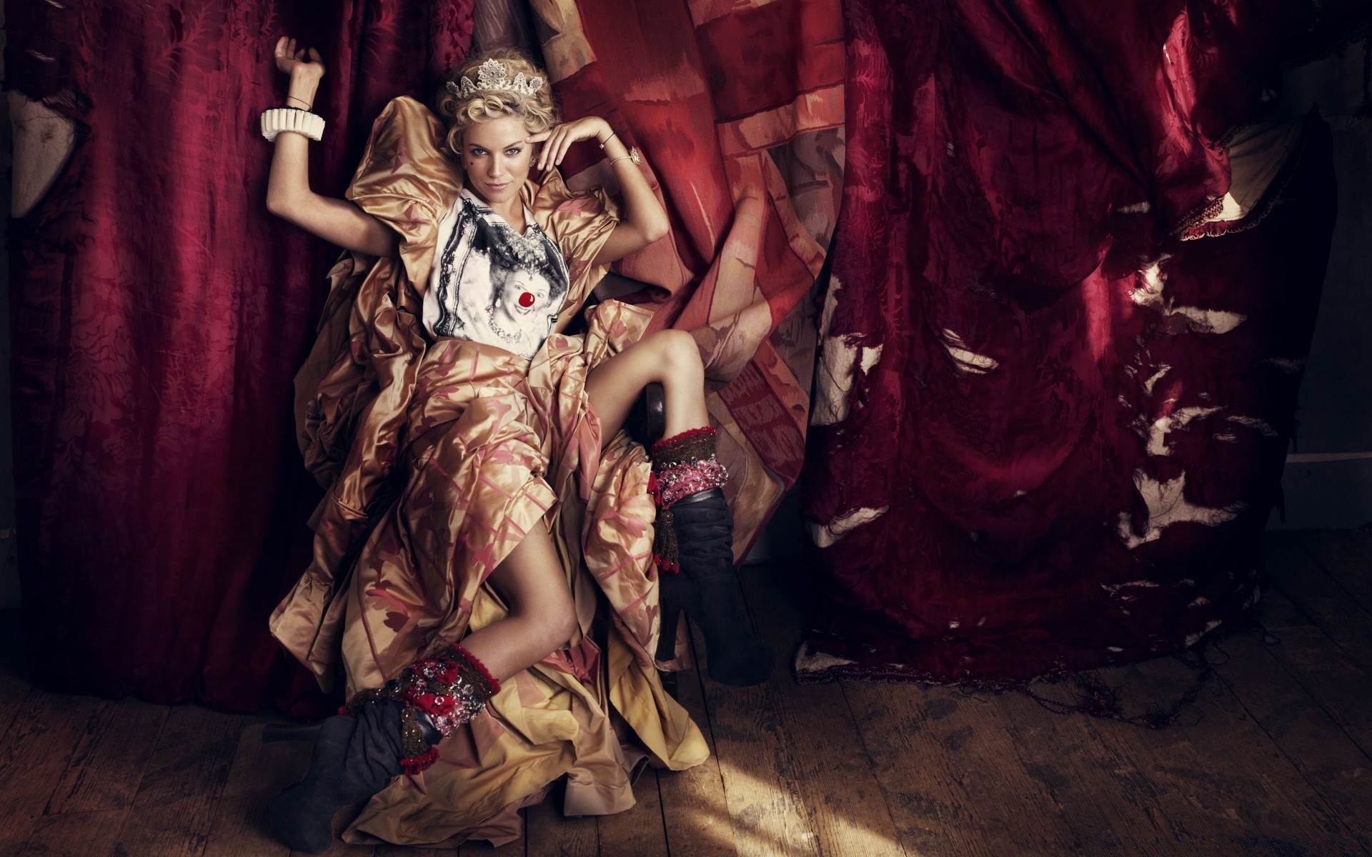 Menina triste em um vestido vermelho
